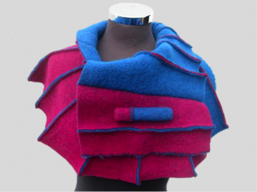 de kraag is dubbelzijdig gevilt van scheerwol waarvan de lagen aan elkaar worden geweven met acryl.