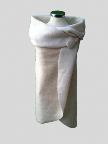 cirkelvormige omslagdoek met armsgaten van gevilte wol op tricot