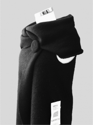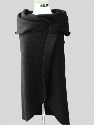 cirkelvormige omslagdoek met armsgaten van gevilte wol op tricot